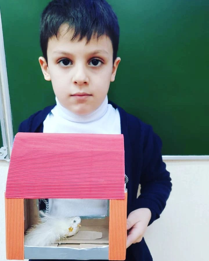 Багиров Орхан,ученик 1 "А" класса принимает участие в экоконкурсе:"Накормим птиц зимой!" в номинации "кормушка".(сделано собственноручно)