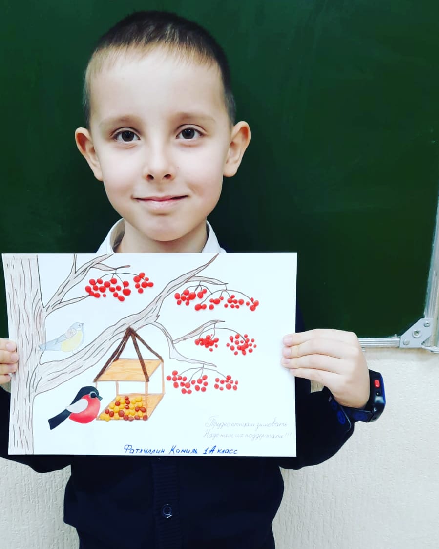 Фатхуллин Камиль, ученик 1 "А" класса принимает участие в экоконкурсе:"Накормим птиц зимой!" в номинации "поделка".