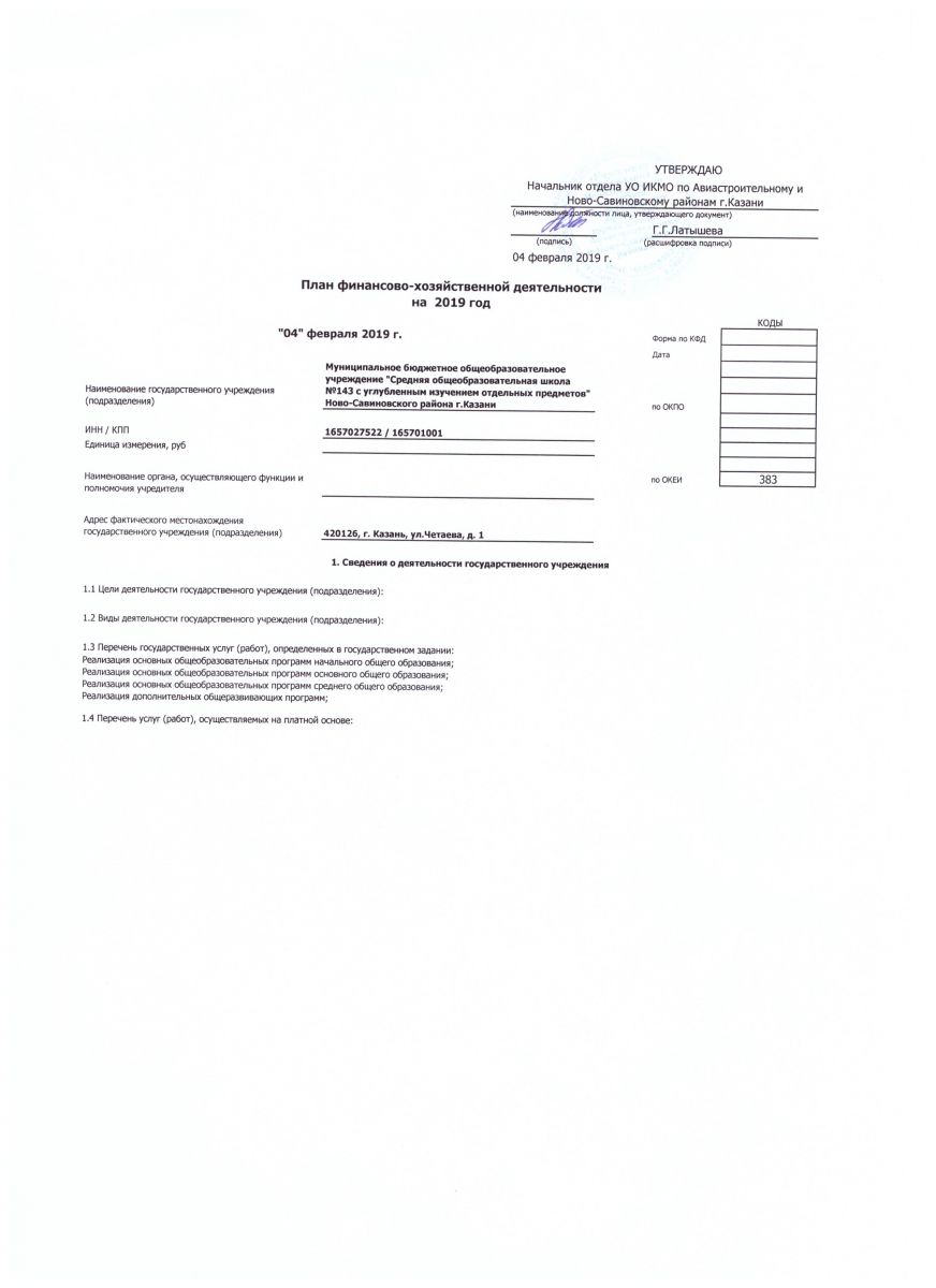 МБОУ «Средняя общеобразовательная школа №143 с углубленным изучением отдельных предметов» Ново-Савиновского района г. Казани