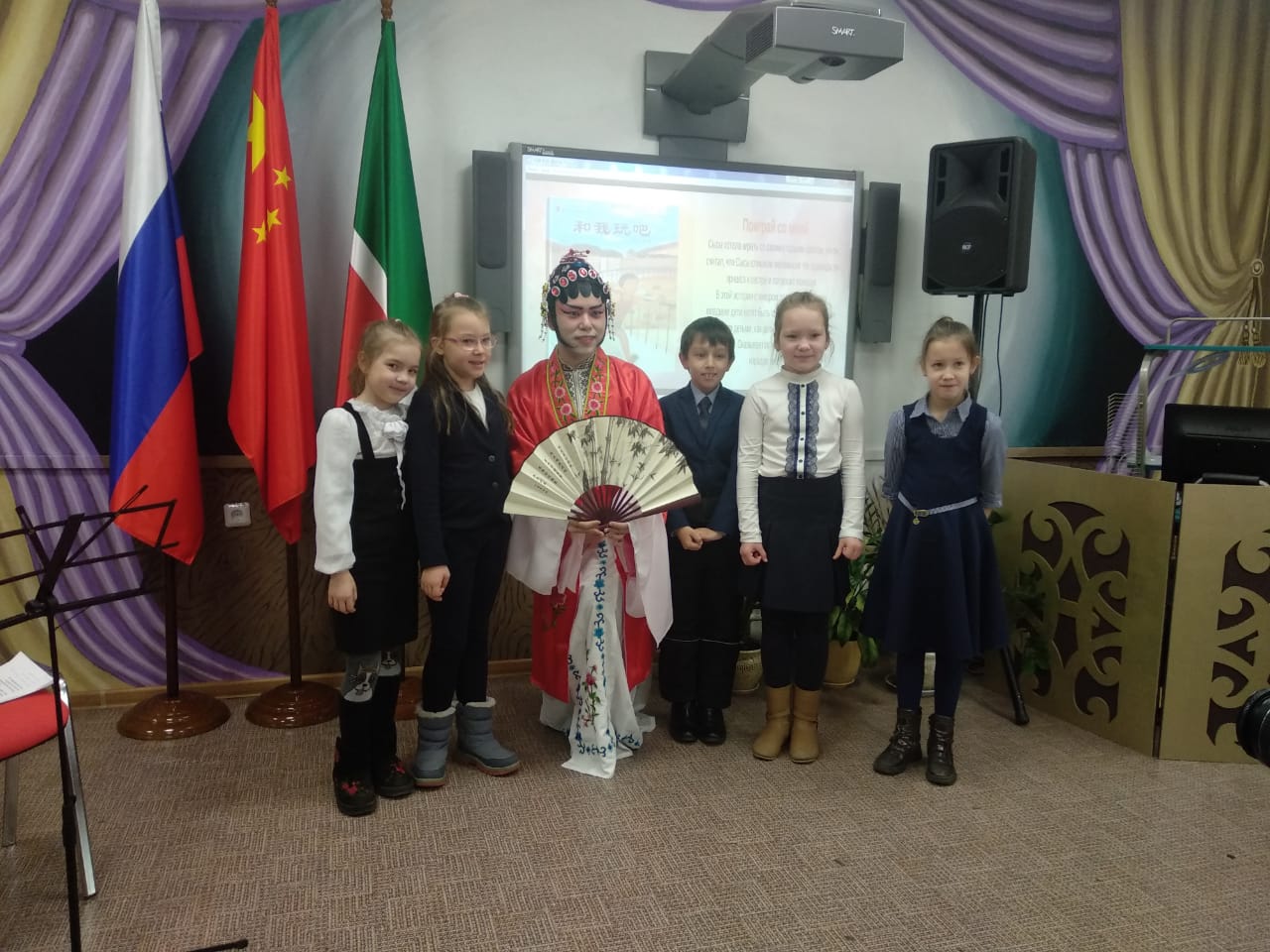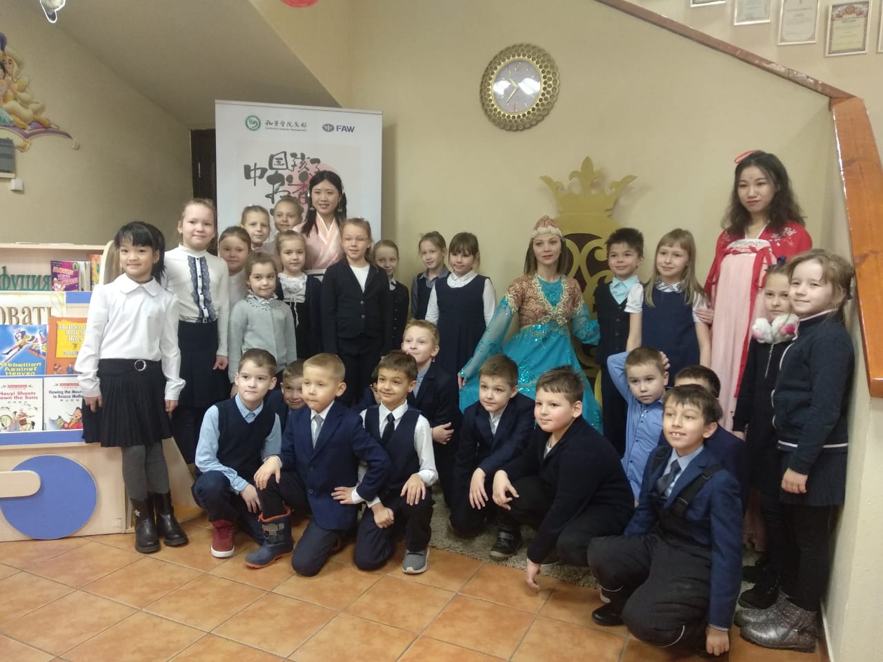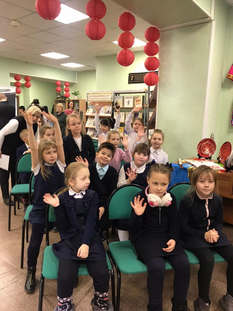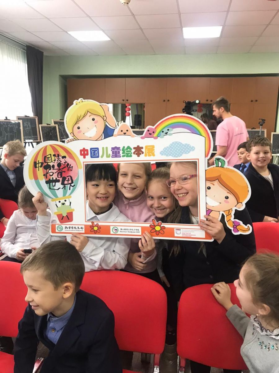 Ученики начальной школы посетили церемонию открытия выставки китайских детских иллюстрированных книг «Мир эрудиции китайских детей» и выставку детского карикатурного рисунка культурных людей «Наивными глазами-2019» художника Хэ Ливэй. В экспозиции представлено 30 картин. Кроме того, наши школьники смогли поучаствовать в мастер-классах по слушанию сказки и вырезанию китайских иероглифов из бумаги, обучению китайской живописи и каллиграфии, обучению рисования образцов грима по культуре китайской Пекинской оперы. Также дети посмотрели китайские мультфильмы.