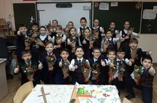 Да, есть и такие букеты! И сегодня над ними «колдовали» ученики 4Г класса (руководитель Юрченко Наталья Закировна) под руководством родительницы Нестеровой Ольгой Александровной. Немного еловой зелени, мишуры, ёлочный шарик и обёрточная бумага плюс фантазия ребят – «рецепт» новогоднего букета!