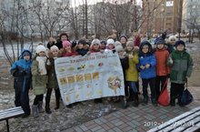 Ученики 3 А класса повесили кормушки, установили баннер с рекомендациями по кормлению птиц.