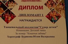 «Всё новое – хорошо забытое старое» - по этому принципу действовал хореографический коллектив 4Г класса (руководитель Бурякова Юлия Валерьевна) приняв участие 17-24 октября 2017 года в четвёртом международном онлайн-конкурсе хореографического искусства «ВДОХНОВЕНИЕ». Танец «Кошачьи забавы» вновь принёс коллективу успех! Поздравляем руководителя и юных танцоров, ставших дипломантами конкурса 1 степени!