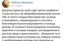 Коллективы 2Д (руководитель Родионова Ольга Анатольевна) и 5В классов (руководитель Дусталёва Тальяна Николаевна) нашей школы приняли участие в благотворительном сборе вещей, необходимых для новорождённых детей, которые оказались в детском распределителе при роддоме №18, потому что от них отказались родители... Без лишних слов и комментариев... Просто - спасибо нашим ученикам и их родителям!