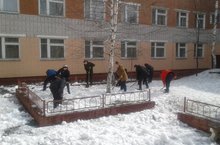 учащиеся 9Б класса (руководитель Сосновская М.Н.), которые 7 апреля 2017 года вышли на пришкольную территорию и занялись ворошением снега. Хороший пример для подражания! Дружными выходами классов на уборку территории школы поможем скорее весне окончательно вступить в свои права! Ведь после неё - долгожданное лето!