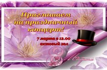 Приглашаем вас на праздничный концерт, посвящённый 8 Марта, который состоится 7 марта в 12.00 в актовом зале.