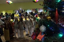 24 декабря уходящего года в актовом зале состоялся замечательный праздник для учеников начальной школы. В гости к ним пришли сказочные герои: Снежная Королева, Лиса Алиса, Кот Базилио и, конечно же, Дедушка Мороз со Снегурочкой. Каждый класс сдавал «экзамен» на дружбу, умение работать в команде. А, главное, ребята должны были показать Деду Морозу свои успехи в танцах. Все коллективы представили на суд главному волшебнику свои программы. Гостей праздника ребята порадовали красочными танцами, великолепными костюмами и слаженной работой.