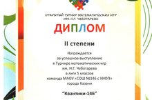15-17 апреля 2016 года в Казани проходил Всероссийский открытый турнир математических игр им. Н.Г.Чеботарёва, в которой приняли участие наши пятиклассники под руководством преподавателя математики Зайцевой Марины Юрьевны.