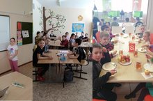День начался с традиционной зарядки и сытного завтрака. Сегодня в лагере был насыщенный день. Для школьников провели интересные занятия по английскому языку и спортивное мероприятие. После вкусного обеда отряды посетили театральный урок-спектакль "Карусель в голове". День закончился полдником и прогулкой на свежем воздухе. В конце дня подвели итоги конкурса рисунков на тему "Вместе мы сила!"