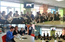 Диляра Рамилевна вручила призы ученикам, задавшим самые интересные вопросы. Общая фотография на память была необычной: рядом с участниками встречи, семьёй Лашкиных на экране была Юля, которая поблагодарила лицей за возможность вновь окунуться в атмосферу лицейских лет и за память о своих выпускниках!