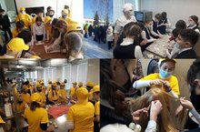 6 "Г" класс сегодня посетил Международный Колледж Сервиса, где им представилась возможность познакомиться с некоторыми профессиями, которым обучаются студенты колледжа. Ребята попробовали себя в роли кондитеров, пекарей, парикмахеров.