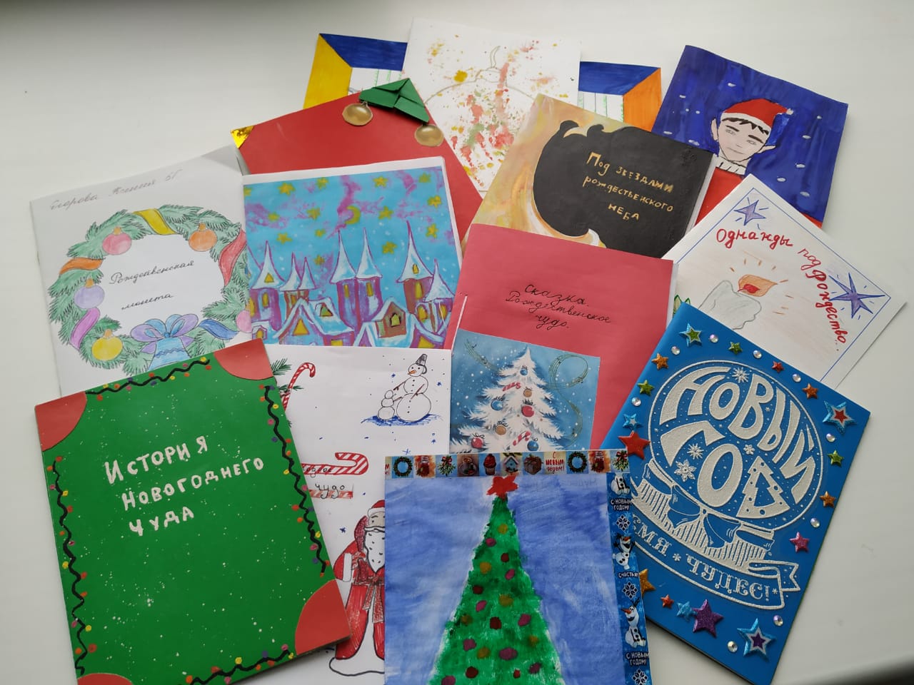 На предыдущей неделе, ученики 5г, 6б и 8б классов на уроках родной литературы сочинили замечательные рождественские сказки и сами оформили книги.
