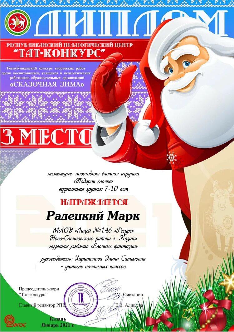 25 января были подведены итоги Республиканского конкурса "ТАТ-КОНКУРСА " "Сказочная зима". Талантливые ребята 2д класса Гизатуллина Самира и Радецкий Марк стали победителями. Поздравляем и желаем дальнейших побед!