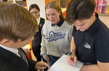 Артём Зайцев, ученик 8а, который по-джентельменски пропустил Камиллу вперед, обещал ей быть активным в команде лидеров и в любой момент подставить свое надежное плечо! -