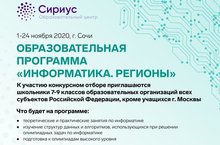 Образовательная программа «СИРИУС» «ИНФОРМАТИКА. РЕГИОНЫ» 18.05.2020