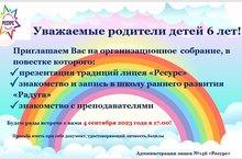 29 августа администрация лицея на собрании общелицейского родительского комитета обозначила основные тенденции развития «Ресурса» в новом учебном году. Были обсуждены многие организационные вопросы начала учебного года, определены ближайшие задачи для работы родительского актива, намечены события, в которых наши главные помощники примут действенное участие. В связи с объективным частичным обновлением состава родкомитета администрация лицея 146 «Ресурс» выражает искреннюю благодарность родителям, которые активно работали в команде лицея, а также приветствует обновленный состав, надеясь на инициативную и продуктивную работу вновь выбранных председателей родительских комитетов классов! Вместе мы - большая сила!