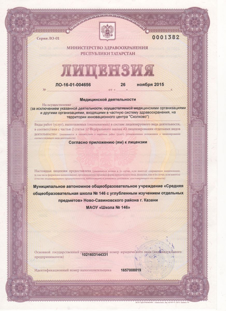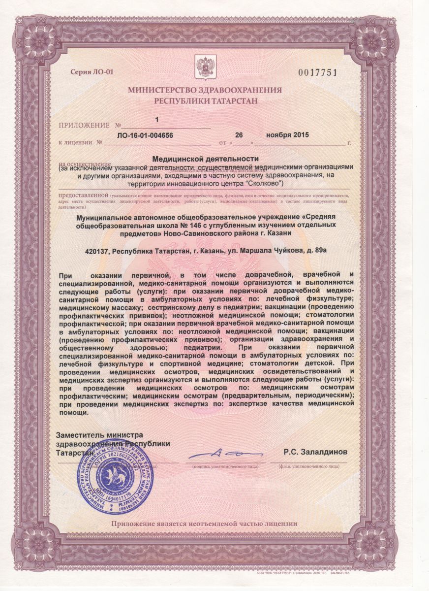 Лицензия на медицинскую деятельность страница1 страница2 Приложение к лицензии