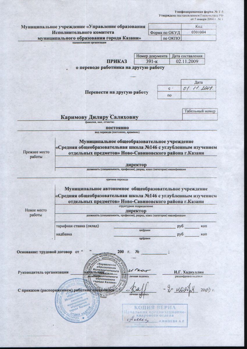 Приказ о назначении директора