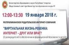 19.01.2018 с 12.00 до 13.30 состоится Республиканское родительское интернет-собрание «Виртуальная жизнь ребенка: интернет – друг или враг?