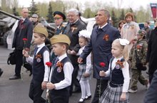 Сегодня Президент Республики Татарстан Рустам Минниханов возложил цветы к Вечному огню колоннады Мемориала Славы в казанском Парке Победы. Также в церемонии приняли участие Государственный Советник Татарстана Минтимер Шаймиев, Председатель Государственного Совета РТ Фарид Мухаметшин, Премьер-министр РТ Алексей Песошин и другие официальные лица. А так же вместе с первыми лицами республики память героев чествовали ученики 1 А класса, Лицея №177 г. Казани.