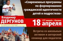 18 апреля 2017 года в стенах лицея №177 города Казани пройдет авторский семинар с участием Владимира Дергунова, (к.п.н., директор КЦ "Лесное чудо", научный констультант школы "Обыкновенное чудо").