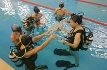 Сегодня в лицее прошло погружение с аквалангом победителей географического диктанта в рамках Дней русского географического общества в лицее 177. Опытные инструктора-аквалангисты научили наших ребят правилам безопасности, условным сигналам под водой, обращению со солидной аппаратурой и началось! Зрители смотрели с завистью, трогали пальцами воду и жалели, что не смогли ответить на все вопросы диктанта и победить...