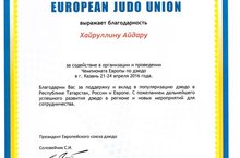 c 22 по 24 апреля Казань стала спортивным центром всей Европы, в нашем городе прошел Чемпионат Европы по дзюдо. Ученик нашего лицея, Хайруллин А., получил благодарность за вклад и поддержку в популяризации дзюдо в Республике Татарстан, Росии и Европе от президента Евпропейского союза дзюдо Соловейчика С.И.