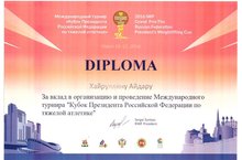За вклад в организацию и проведение Международного турнира "Кубок Президента Российской Федерации по тяжелой атлетике" был вручен диплом ученику нашего лицея Хайруллину А. Поздравляем и желаем дальнейших успехов и развития организаторских способностей!