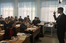 Сегодня у нас в гостях был профессор Казанского федерального университета, доктор филологических наук, Заслуженный работник культуры РТ и РФ, диктор Радио Татарстана Фоат Галимуллович Галимуллин. Он провел мастер-класс по выразительному чтению для обучающихся 8-х классов. Встреча была приурочена к 110-летию со дня рождения писателя –патриота, поэта Фатиха Карима.