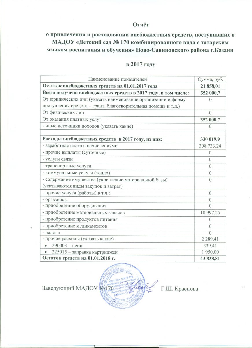 Отчёт о привлечении и расходовании внебюджетных средств за 2017 год