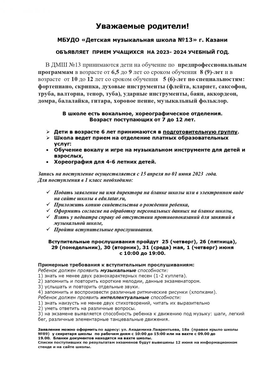 Короткое название: | МБУ ДО г.Казани "Детская музыкальная школа № 13" |
