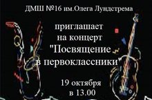 19 октября в ДМШ 16 имени Олега Лундстрема состоится традиционный концерт "Посвящение в первоклассники". Приглашаются все юные музыканты