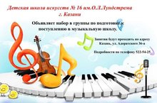 Муниципальное бюджетное учреждение дополнительного образования "Детская школа искусств № 16 им.О.Л.Лундстрема" г.Казани