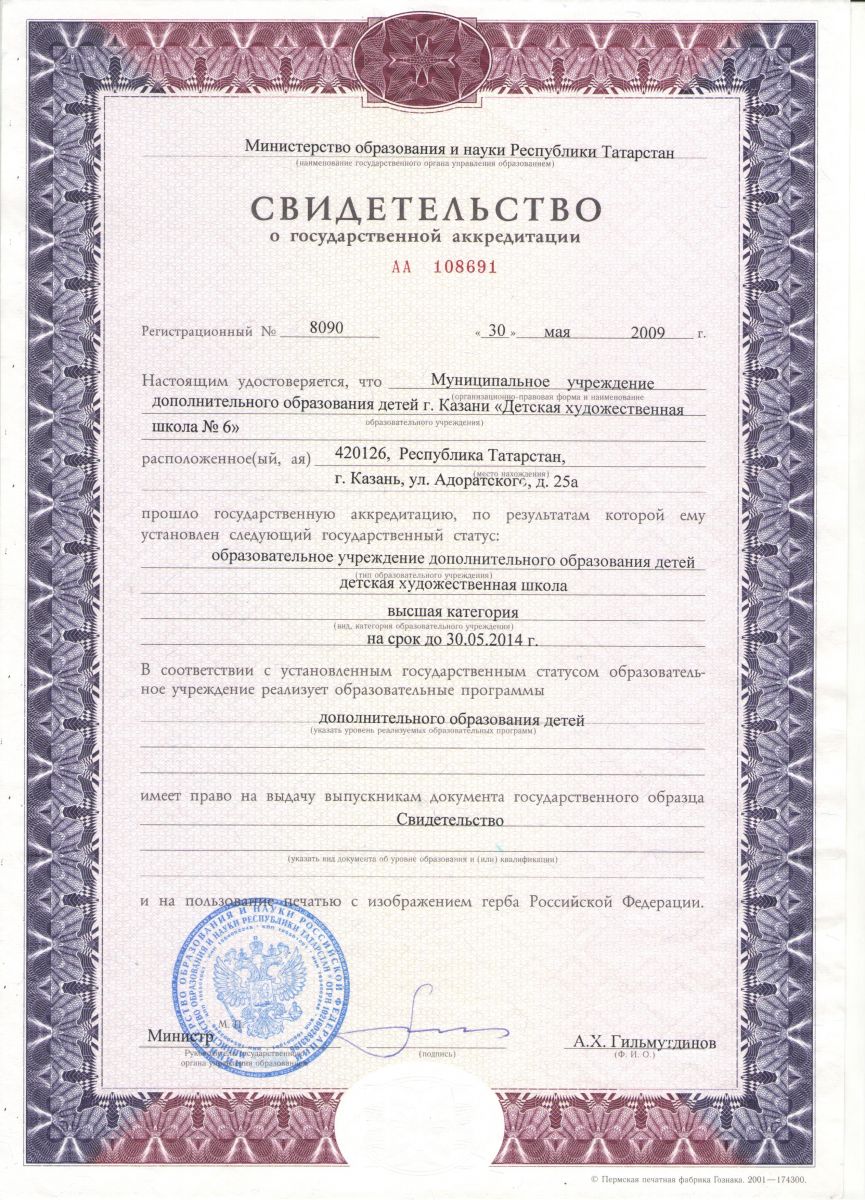 Муниципальное бюджетное учреждение дополнительного образования "Детская художественная школа №6" г. Казани