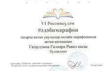ПОЗДРАВЛЯЕМ! 04.03.2019Поздравляем воспитателя по обучению татарскому языку Гатауллину Гульнару Равиловну с участием в VI Российском литературном марафоне. Желаем дальнейших творческих побед!