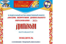 Поздравляем коллектив детского сада с победой в номинации "Здоровый дошкольник" IX Федерального научно-общественного конкурса «Восемь жемчужин дошкольного образования – 2022»! Желаем дальнейших творческих успехов!