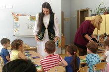 Сегодня состоялось заседание педагогического совета на тему: «Повышение качества работы коллектива по обучению детей татарскому языку при реализации региональной образовательной программы «Сөенеч – Радость познания» Р.К. Шаехова». В рамках педсовета были проведены открытые ООД в группах с обучением и воспитанием на татарском языке №5 и №7. В группе №7 ООД на тему "Путешествие по достопримечательностям г. Казани", в группе №5 продуктивная деятельность аппликация "Украшение фартука татарским национальным орнаментом".