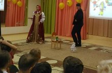Сегодня в детском саду прошёл день знаний. Утром ребят встречали весёлые клоуны, они поднимали малышам настроение и угощали конфетками! А потом в музыкальном зале для детей было организовано представление с участием любимых мультяшных героев Маши и Медведя.