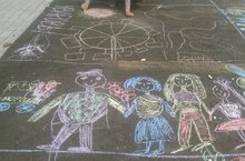 Наши дети решили устроит настоящую галерею из ресунков,но не на бумаге, а на асфальте и конечно же дали ей свое название "Дружная семья"