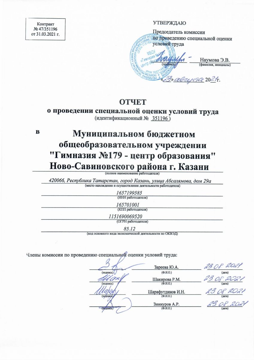 Отчет о проведении специальной оценки условий труда 2021 г.