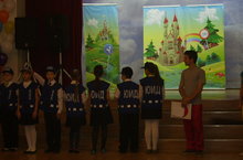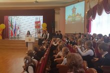 Посвящение первоклассников в примерные пешеходы. Инспектор ГИБДД г.Казани напомнила о правилах дорожного движения и вручила каждому гимназисту световозвращающий значок