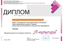 17 октября 2020года состоялся финал Межрегионального конкурса проектов «IT-культура». Ученики 7 класса Панковец и Шарафиева вошли в десятку лучших и стали призерами этого мероприятия.