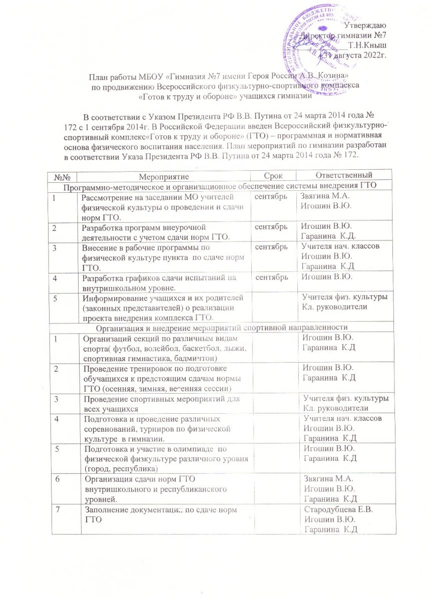План мероприятий по продвижению ГТО 2022-2023