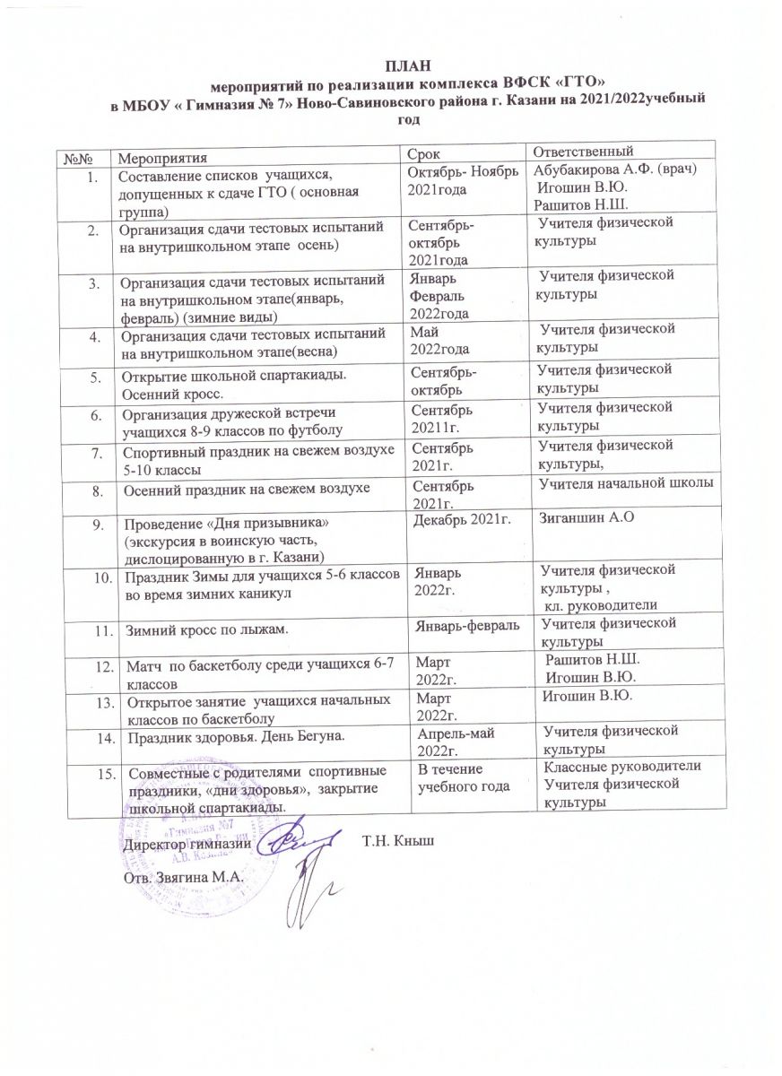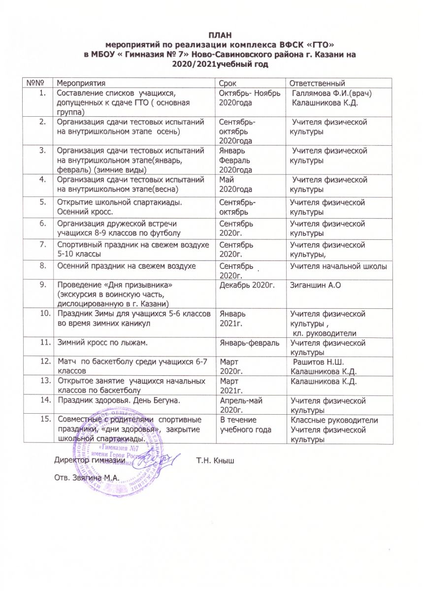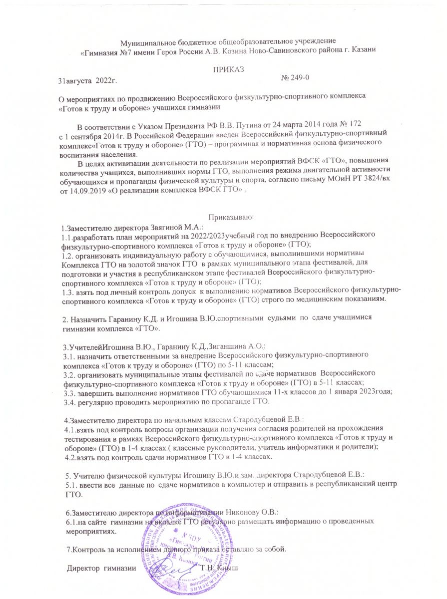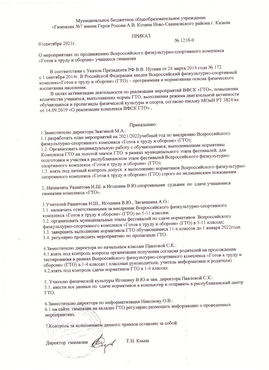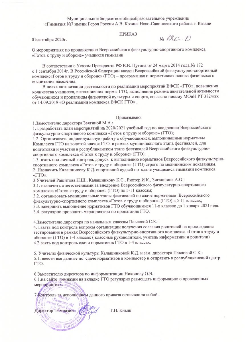 Приказ по гимназии ГТО на 2020/2021 уч.год
