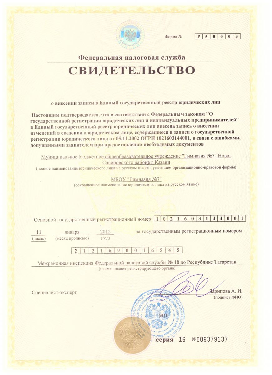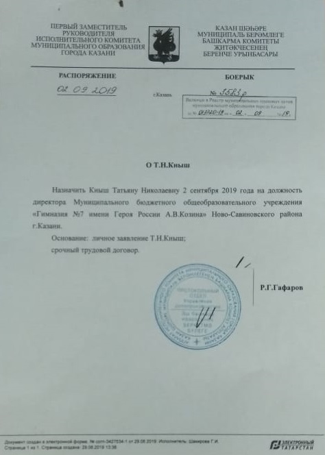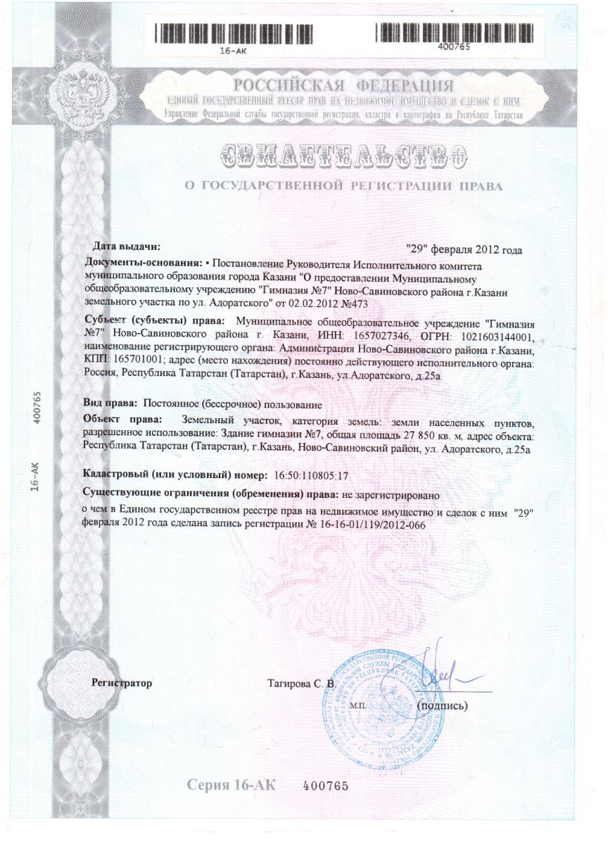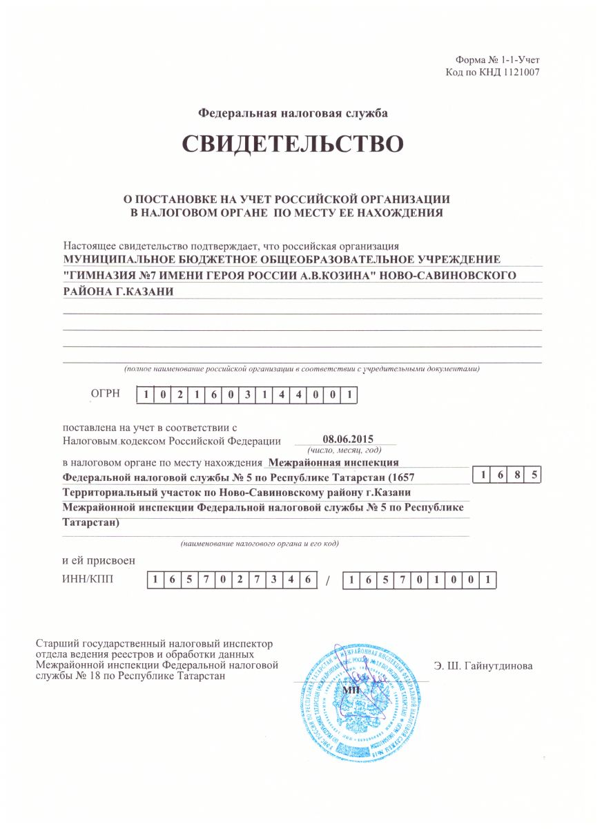 Муниципальное бюджетное общеобразовательное учреждение «Гимназия №7 имени Героя России А.В.Козина» Ново-Савиновского района г.Казани.