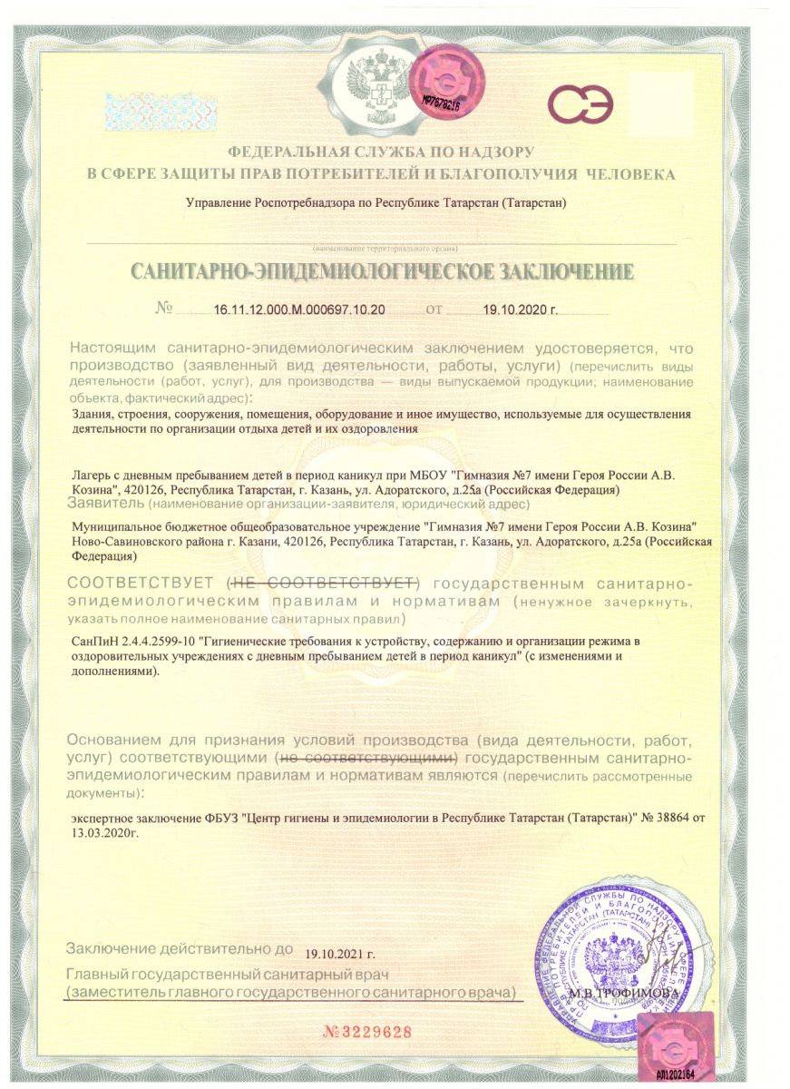 Санитарно-эпидемилогическое заключение на школьный лагерь