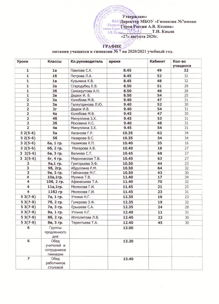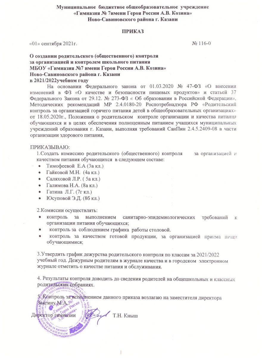 Приказ по организации горячего питания в гимназии на 2023 2024