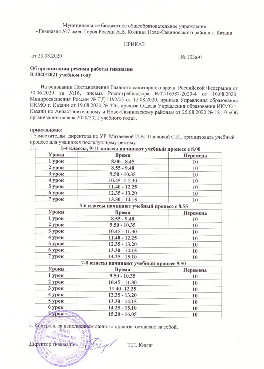 Муниципальное бюджетное общеобразовательное учреждение «Гимназия №7 имени Героя России А.В.Козина» Ново-Савиновского района г.Казани.