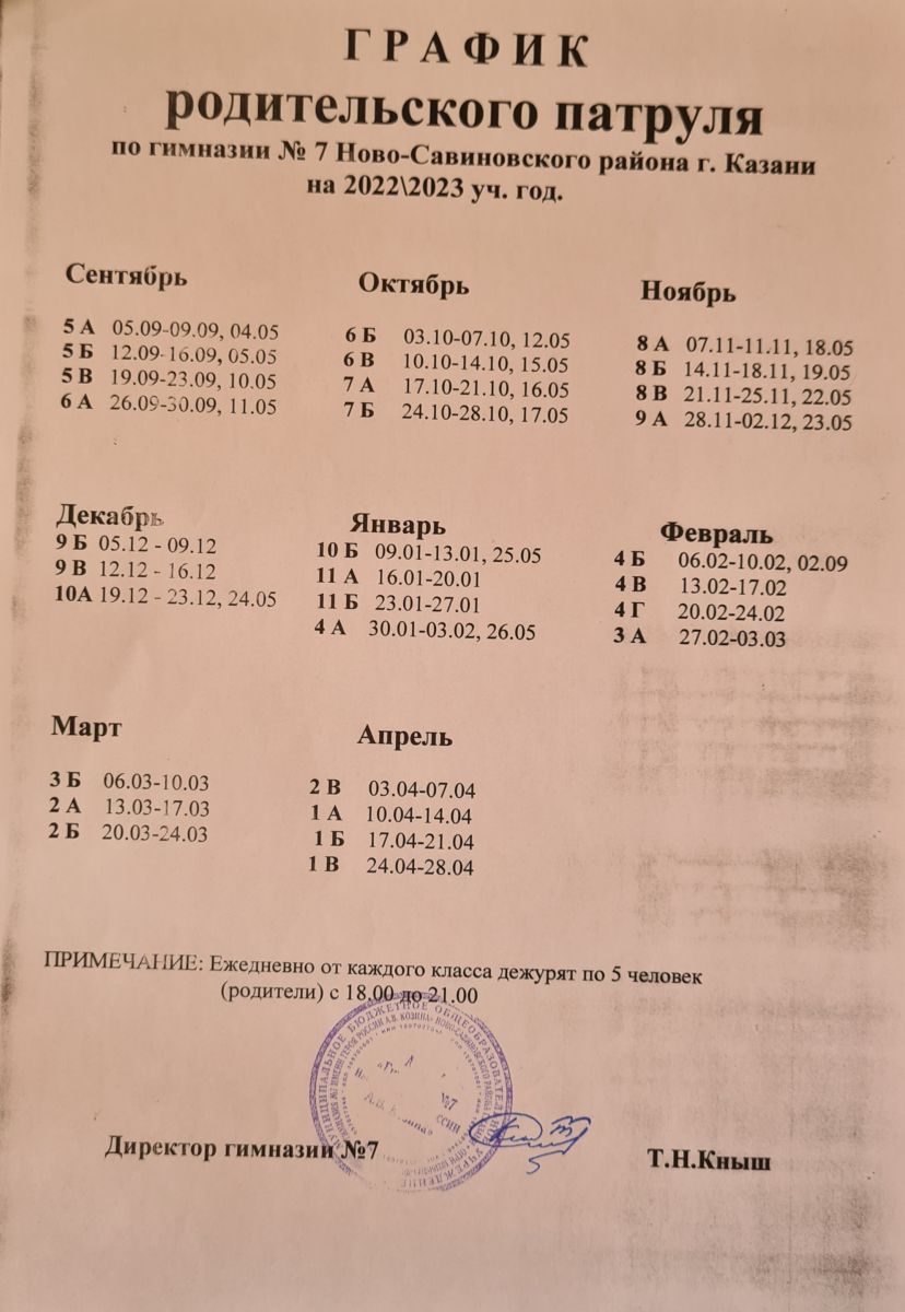 График Родительского патруля на 2023-2024 уч.год