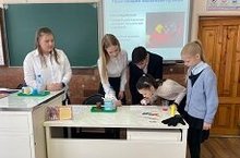 Белем атналыгы кысаларында 8нче сыйныф укучылары 4нче сыйныф укучылары өчен “Нәрсә ул химия?” темасына химия дәресе үткәрделәр -